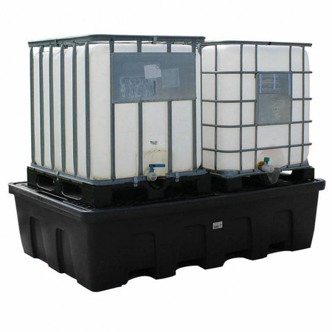 Ce bac de rétention en polyéthylène est conçu pour stocker 2 IBC de 1000 litres ou d'autres contenants jusqu'à 2400 litres.