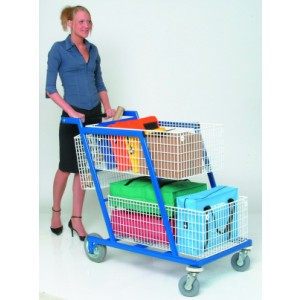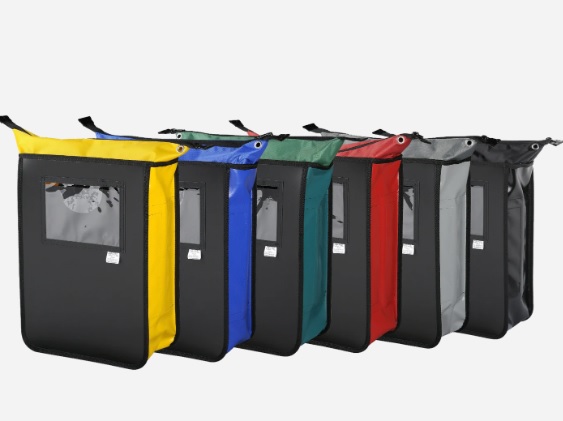 un chariot adapté, pour transporter ces 60 sacoches et à distribuer sur rdc/1er étage/2ème étage, pour monter des trottoir, roues silencieuses, non salissante,et le tout impermeable car passage en extérieur.