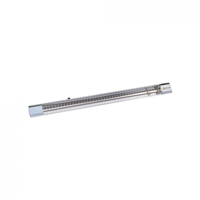 Cet appareil de chauffage infrarouge fonctionne sur alimentation 230 V et se fixe latéralement en hauteur, entre 2,5 et 3 mètres du sol.