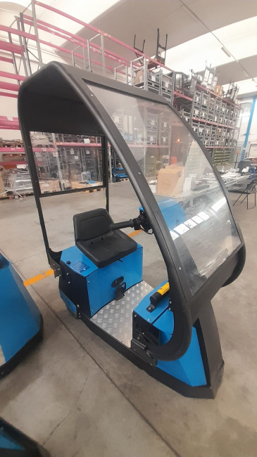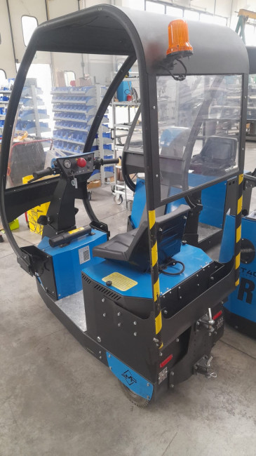 Tous les éléments de sécurité sont là : Présence homme, bouton d'arrêt d'urgence, frein électro-magnétique de parking et frein de service.