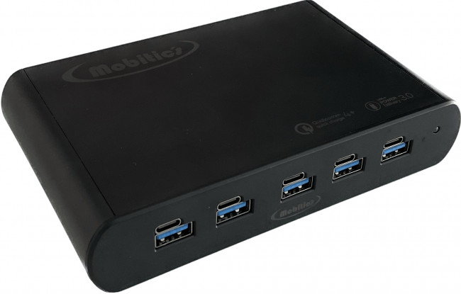 Le MOBIHUB est compatible avec tous les appareils tels que les PC portables, les PC fixes, les tablettes et les smartphones, ainsi qu'avec tous les systèmes d'exploitation, y compris Windows, iOS et Android. Les utilisateurs peuvent facilement connecter leur périphérique à l'un des cinq ports USB-C ou au port USB-A3.0 et profiter de la vitesse de charge rapide offerte par le MOBIHUB.
