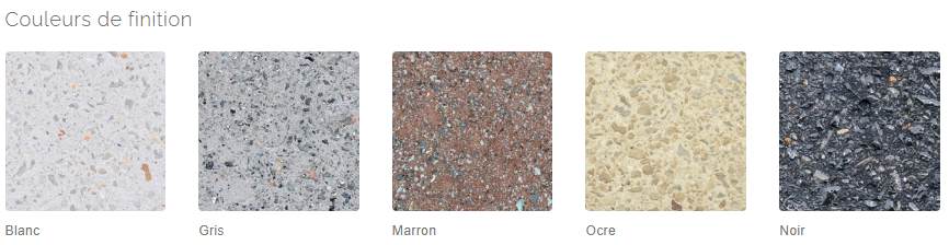 Les agrégats utilisés sont du marbre ou des granulats de carrière concassée, apportant une structure minérale de qualité et une finition visuelle valorisante pour vos espaces publics.