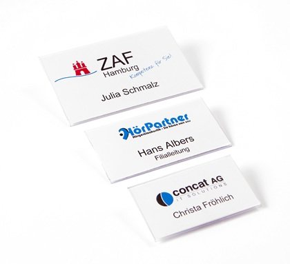 Ces badges devront comporter notre logo, les prénom/nom et peut être la fonction de chacun de mes collègues présents.