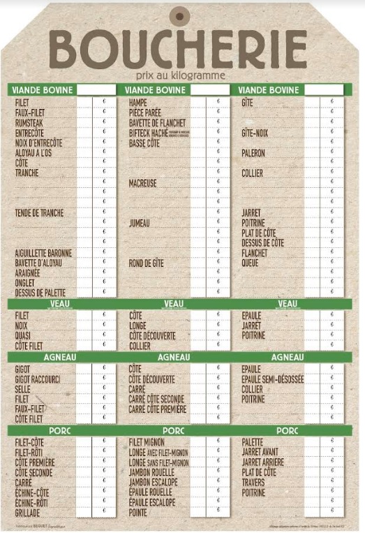 Les étiquettes prix pour boucherie permettent une organisation efficace de la vitrine ou du rayon de viande.