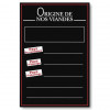Le panneau ardoise « Origine de nos viandes » permet de signaler clairement la provenance des viandes proposées en point de vente.