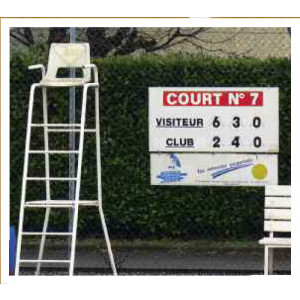 Tableaux marquoirs attachables sur des grillages d"une taille classique pour 3 sets avec RTC ath et visiteurs à l"opposé. Merci de nous revenir avec une idée de prix.