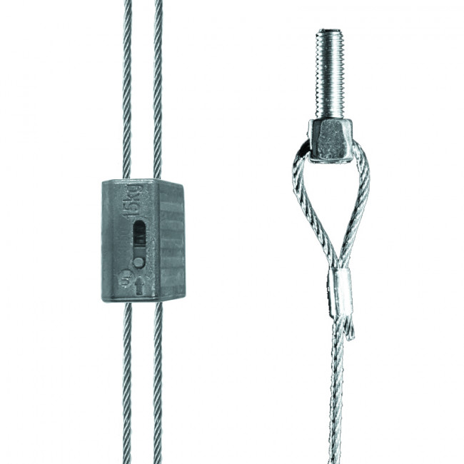 1 galet FC15 ajustable 1 câble Ø 1,2 mm avec embout fileté (M6) Matière : Laiton Longueur : 2ML - 4ML - 5ML - 10ML Conditionnement : 10 pièces