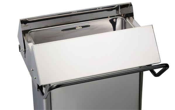 Cette poubelle inox pour cuisine de restaurant fonctionne sous le plan de travail.