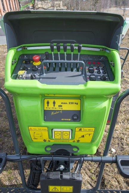 - Panier large avec marche pied d’accès et plancher ajouré pour faciliter l’écoulement de l’eau et de la poussière.