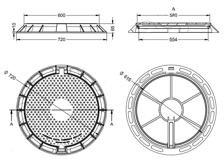 Regard et cadre en fonte ductile pour une charge de 40 Tn, avec joint en polyéthylène et fermeture « clic ».