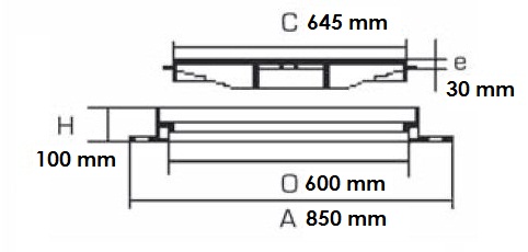 - O : Dimension ouverture du passage : 600 mm
