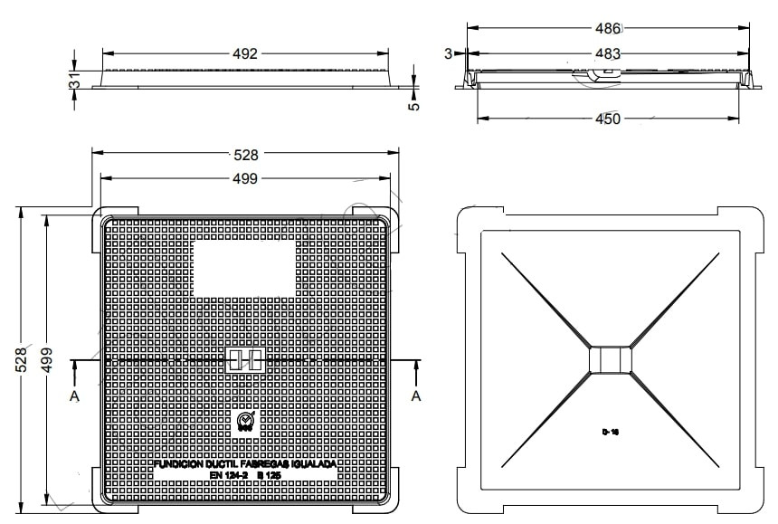 Les dimensions extérieures de 528 x 528 mm correspondent parfaitement aux standards d'installation des systèmes hydrauliques urbains.