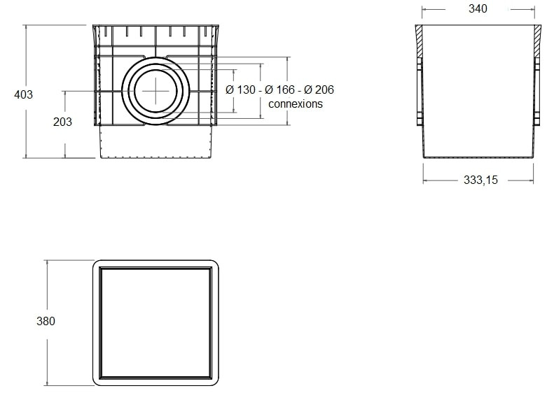 | Réf. TC :1501186 | Coffret canalisation en polypropylène avec chape | 380 x 380 x 403 | 2.57 | -