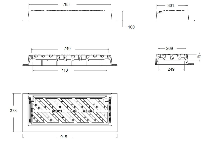 Grille et cadre inclinable en fonte ductile pour une charge de 25 TM.