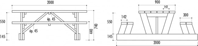 Cette table de pique-nique bois d'un longueur de 2000 mm est destinée aux aires repos et les espaces verts.