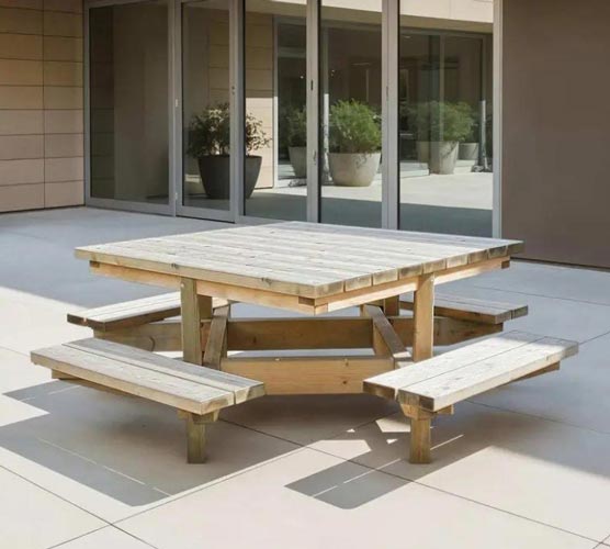 Table pique-nique carrée Dublin en bois pour collectivités
