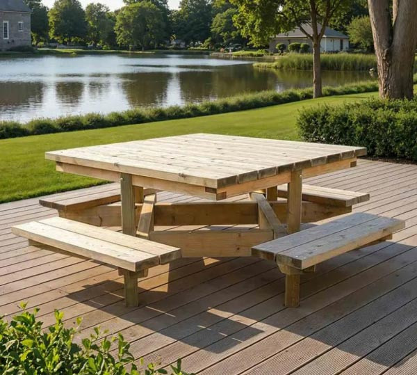 Notre table pique-nique carrée Dublin en bois s’adresse aux collectivités, campings, écoles, entreprises et gestionnaires d’espaces publics qui souhaitent aménager des zones de détente conviviales en extérieur.