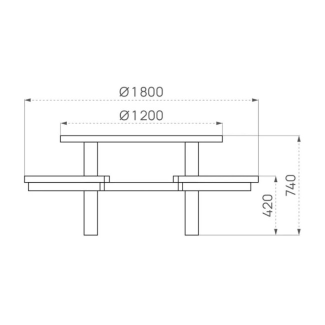 Avec une dimension totale de Ø 1800 mm, cette table de pique-nique ronde occupe une surface maîtrisée tout en offrant un confort optimal pour 8 personnes.