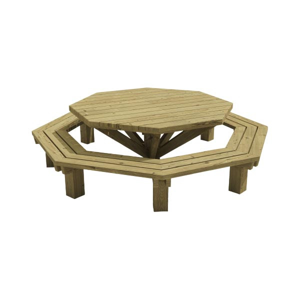 Notre table pique-nique octogonale en bois Kereon ronde est conçue pour les espaces extérieurs collectifs :