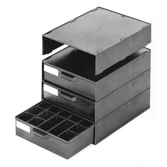 Ces tiroirs sont empilables entre eux , ils peuvent être équipés de plateaux alvéolés thermoformés ou de godets de séparations.