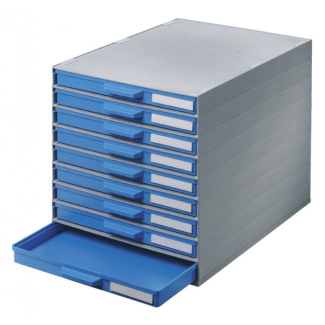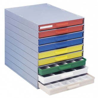 Il se compose de 9 tiroirs amovibles et superposables les uns sur les autres grâce à leurs rebords surélevés.