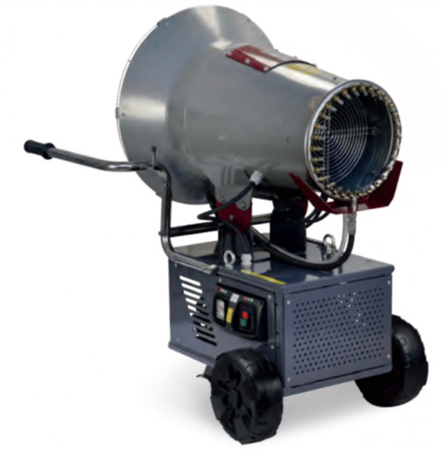 Le canon brumisateur est conçu pour être mobile et facile à déplacer grâce à ses roues pneumatiques.