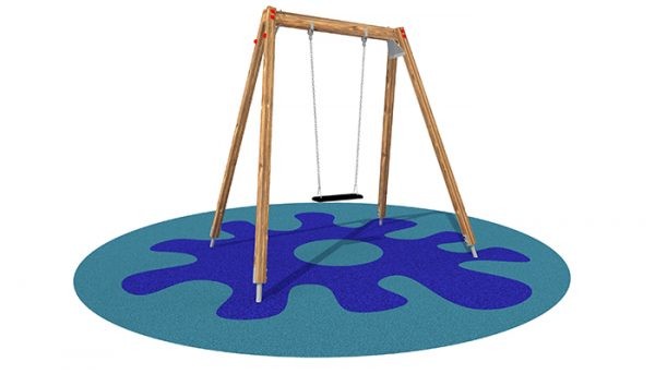 Balançoire en bois lamellaire de pin nordique, équipé d'un siège anti-choc plat en caoutchouc.