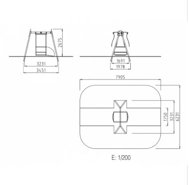 - Masse partie lourde : 2 x 2,3 x 1,3 m