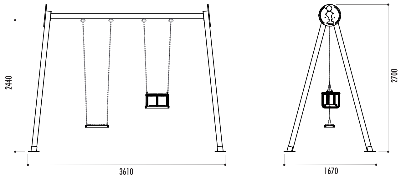 - Un siège enfant et un siège bébé en caoutchouc maintenu par des chaînes en acier inoxydable