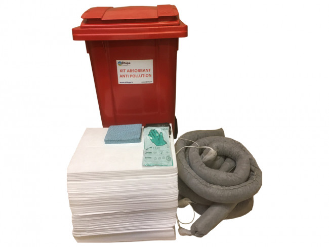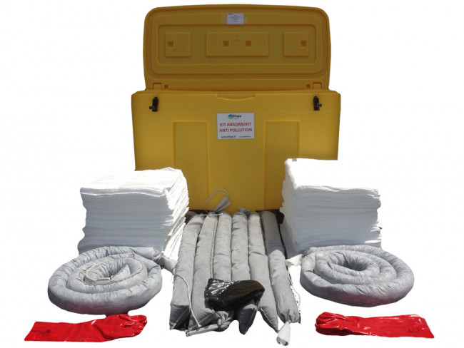 C’est un kit antipollution qui contient tout le nécessaire et permet de couvrir des volumes allant de 10 à 1000 litres d’hydrocarbures.