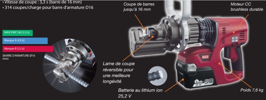 Cette coupe-barre d’armature coupe manière fiable les barres d’armature.