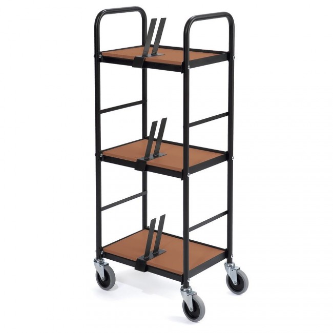 Ce chariot de bureau à plateaux peut être utilisé pour le transport de dossiers avec un espace pour 7 ou 12 classeurs par plateau.