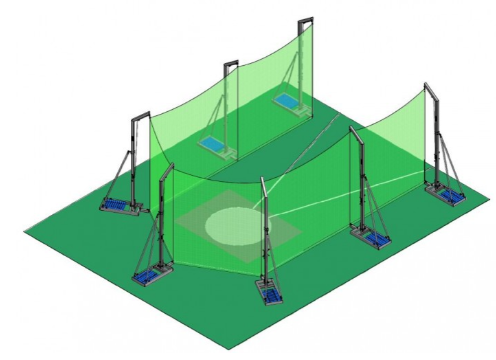 Cette cage disque à embases mobiles est conçue pour lancer du disque et du marteau.