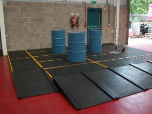 Les planchers peuvent être associés l’un à l’autre rapidement, et la plateforme de rétention peut recevoir des rampesd’accès afin de faciliter le passage des chariots manipulateurs.