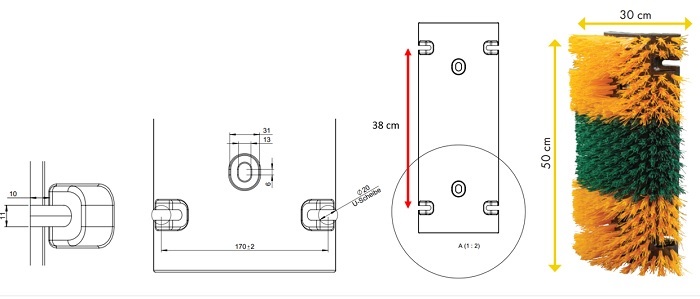 Il est également possible de monter 2 brosses sur un poteau rond de d=76 mm.