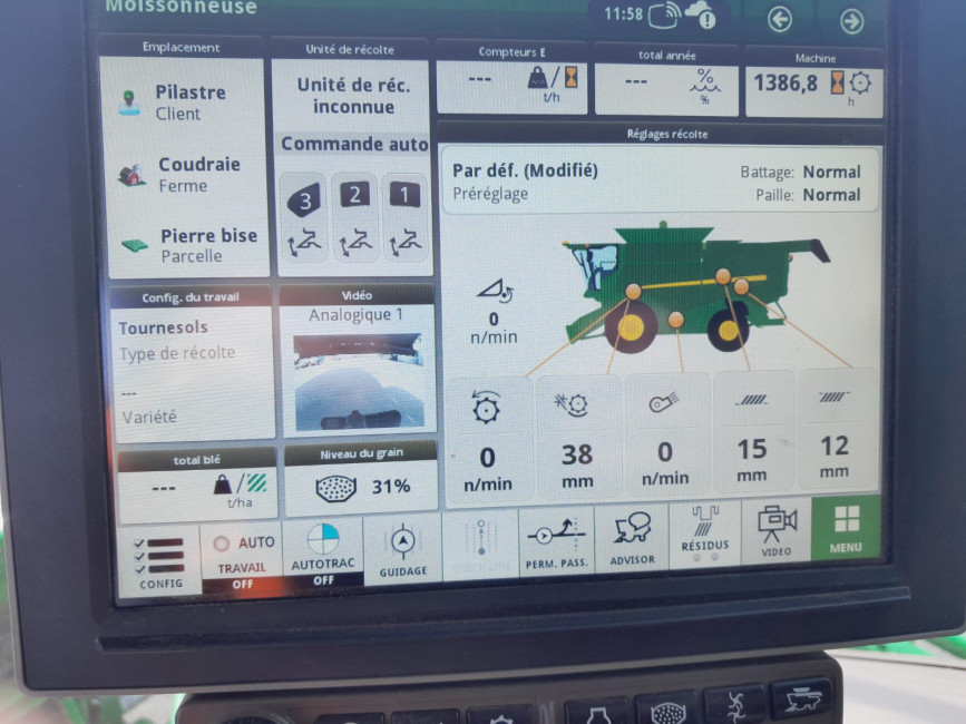 Équipements complets : climatisation, GPS, broyeur, éparpilleur, scie à colza