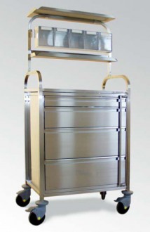 Fabriqué en France, cet équipement médical dispose d'un plan de travail en inox embouti en partie supérieure.