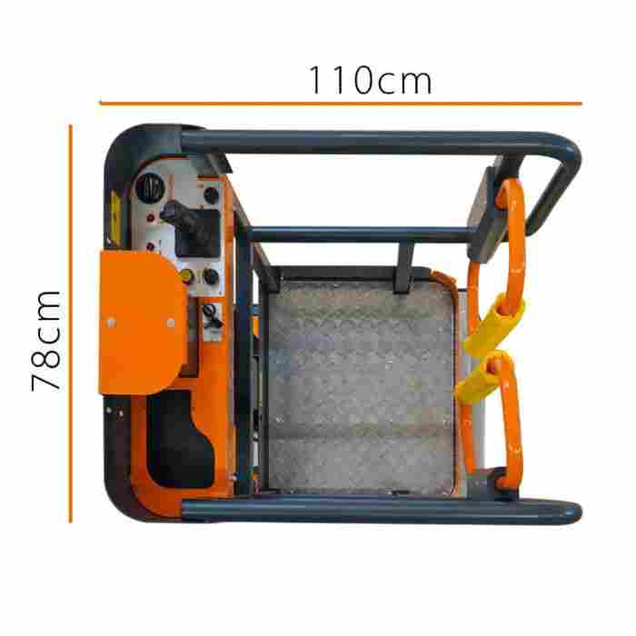 Avec ses dimensions de 110 x 78 cm, elle s’adapte parfaitement aux zones à accès limité, facilitant ainsi le travail dans des allées étroites ou des zones encombrées.