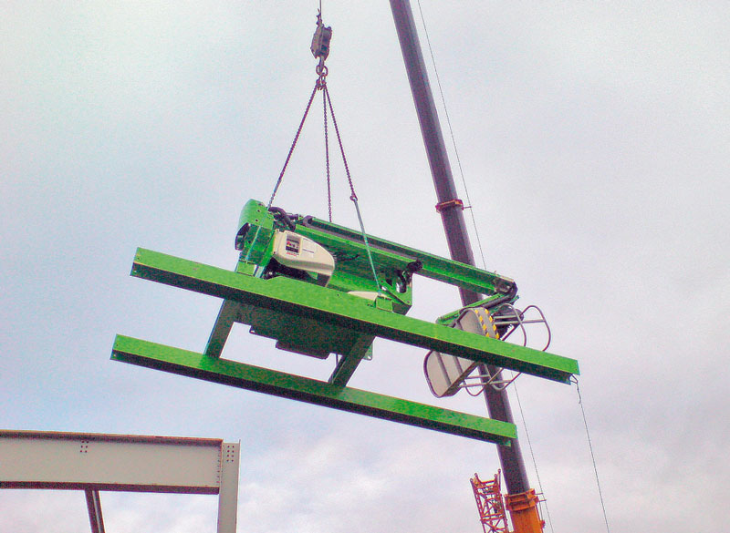 - Exceptionnellement légère, la plate-forme élévatrice sur traîneau fixe peut ainsi servir dès les premiers stades de construction de la structure en acier, avant la pose des dalles en béton