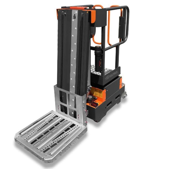 Cette plateforme élévatrice est adaptée aux entrepôts, magasins et espaces de stockage réduit.