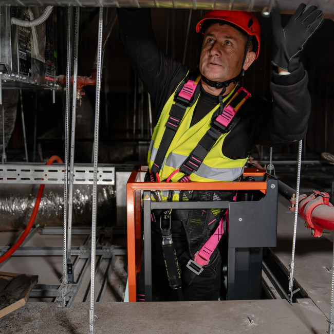 Cette nacelle professionnelle est une solution adaptée aux contraintes des espaces intérieurs.