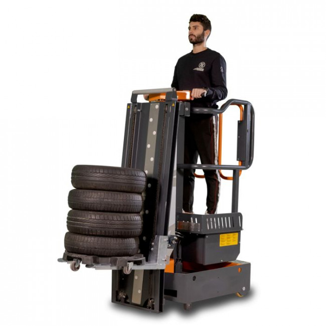 La nacelle élévatrice est un préparateur de commandes spécialement conçu pour le secteur des pneumatiques.