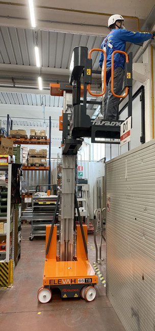 La nacelle élévatrice à panier rotatif est conçue pour répondre aux exigences des professionnels de l'entretien industriel intervenant dans des espaces restreints.