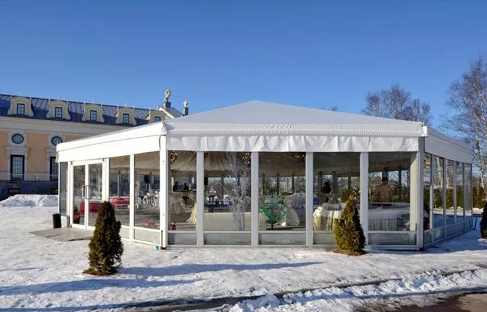 tente de réception au design élégant qui peut accueillir des clients ou des invités lors :