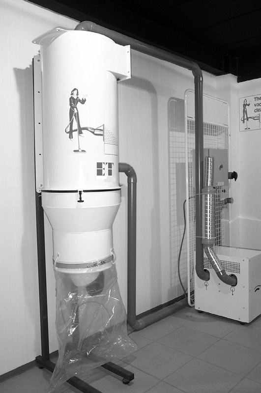 La poussière est recueillie dans un sac poubelle plastique transparent (100l) permettant un aperçu visuel du niveau de remplissage.
