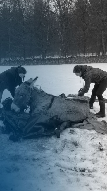 4. Glisser le coussin dégonflé sous l’animal couché en décubitus latéral