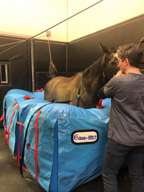 Ce coussin gonflable est conçu pour limiter les risques de blessure du cheval ou du personnel soignant après une chirurgie.