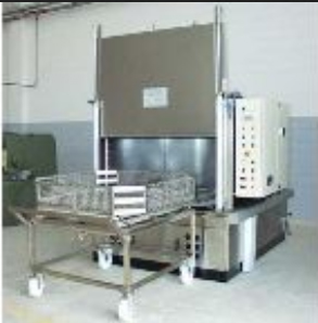 Ces machines ont une chambre de nettoyage ou l'opérateur charge la table pivotante avec un panier octogonal en acier inoxydable sur lequel les pièces à traiter sont charg&e
