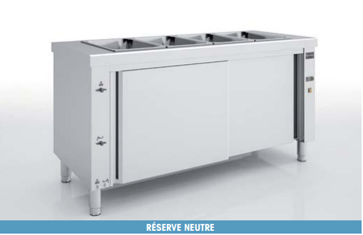 La cuve doit toujours être remplie d’eau à la mise en marche, sa température est réglable de +30°C à +90°C. Son chauffage est par résistance silicones collées sous la cuve qui augmentent le rendement et diminuent la consommation électrique.
