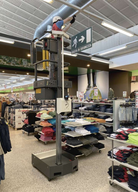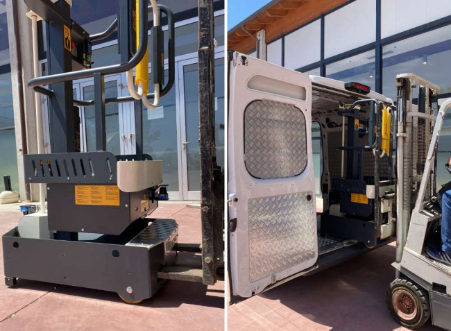 LES ATOUTS : Nacelle automotrice au sol, guidon ergonomique pour un confort optimal, système de verrouillage des portes, dispositif de sécurité renforcé, frein de stationnement électronique et automatique, systèmes de contrôle intégrés, signal lumineux de mouvement pour une visibilité accrue